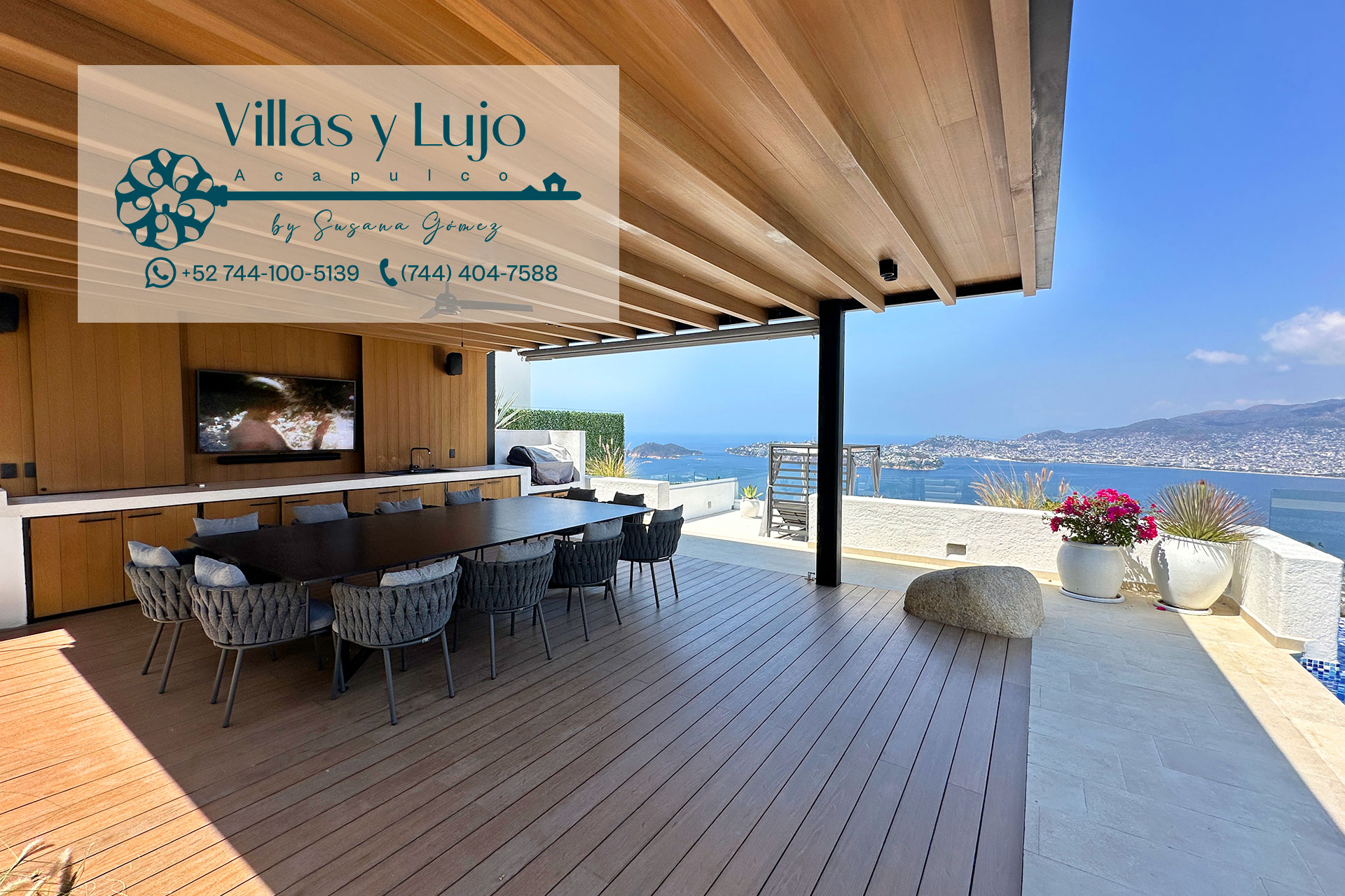 - Pérgola con asador, TV comedor para 12 personas